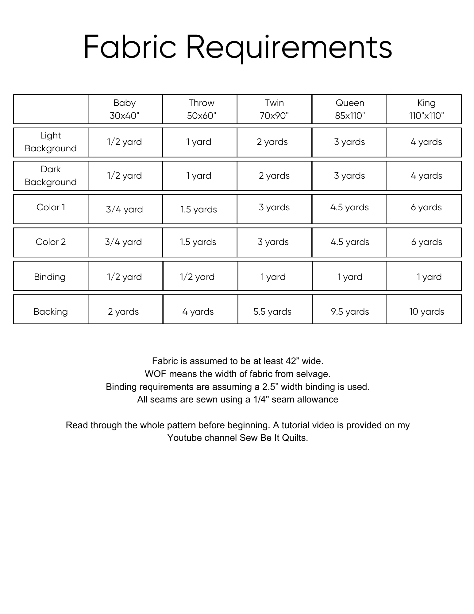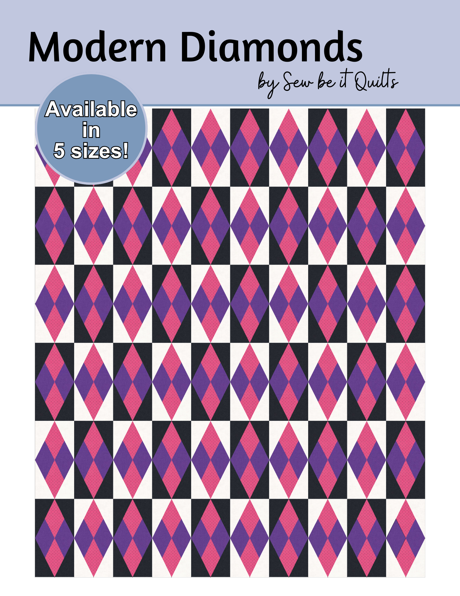 The Modern Diamonds quilt pattern is available in PDF form only. The pattern has cutting instructions for 5 different quilt sizes. Acrylic templates are available for this pattern, however, the pattern contains paper templates as well.